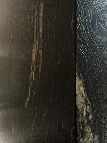 Ce marbre vert aux nuances mordorées apporte une atmosphère chaleureuse et élégante, mettant en valeur la profondeur de ses veines naturelles.